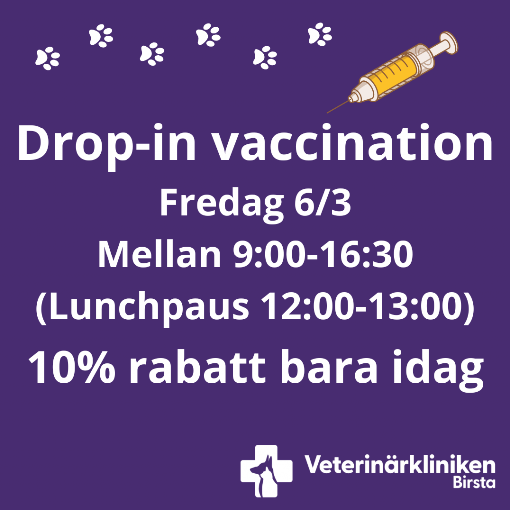 Vi tar emot patienter för vaccination dagligen. För tillfället har vi ingen drop-in tjänst, men vi har generöst med tider och brukar kunna boka in er för vaccination redan samma dag som ni kontaktar oss om så önskas!